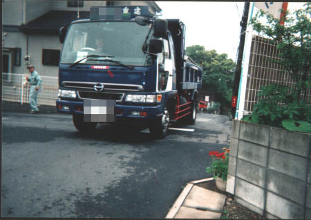 前日の深夜、翌日の工事予定に記載がないために工事の内容はわからなかった。 ところが翌日は早朝6時半に突然5トンダンプが現場前に出現。住民は驚愕した。 なぜなら4トン以上の工事車両は市と中央住宅との協定で、9時から夕方5時までしか通行できない。 まだ就寝中の人もいる時間だ。またもや行われた違反。住民は怒っている。 その後、工事の予定表は7時半に「ダンプMAX56台」と記載された。順序が逆。なんの為に工事予定表があるのか。 子ども達の通学路であり、地元の人たちに愛される墓地の入り口でもある生活道路でこんな工事が行われている。 これが死人坂で行われている工事の実態だ!! 翌日現場監督に前日の違反の件を聞くと「ちょっと間違えて入っただけ。地図を見ながら来て間違えて入っただけだ。このクルマは今日は現場に入れないようにした」という。 管理者責任をいったいどう考えているのだろう。 |